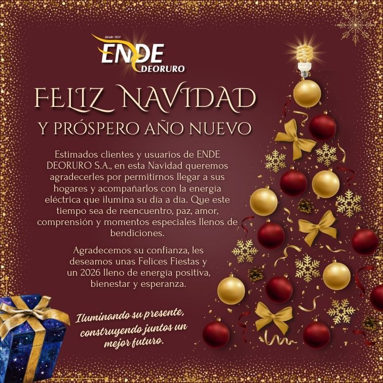 FELIZ NAVIDAD Y PRÓSPERO AÑO NUEVO LES DESEA ENDE DEORURO S.A.