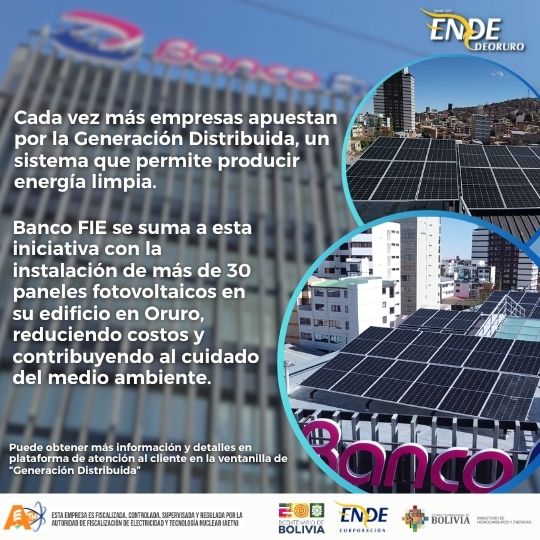 Banco FIE se suma a esta iniciativa con la instalación de más de 30 paneles fotovoltaicos en su edificio de Oruro, reduciendo costos y contribuyendo al cuidado del medio ambiente.